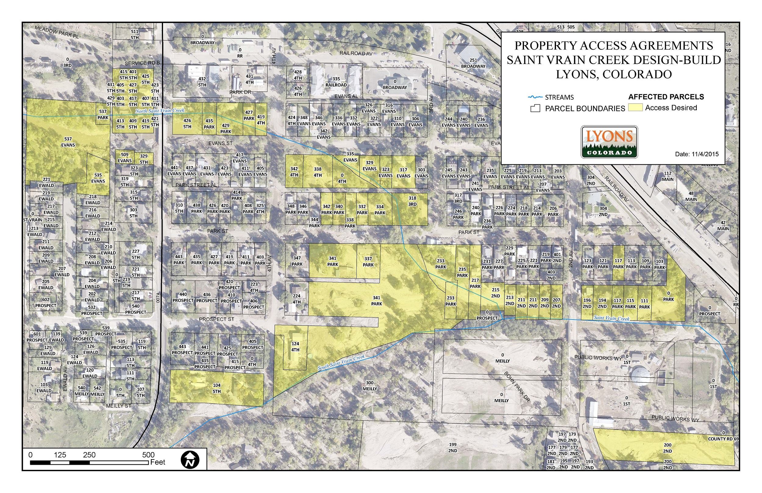 According to the Lyons Recovery Action Plan, the St. Vrain Creek restoration entails river way improvements including rock formations and re-vegetation, to reintroduce wetlands, slow the flow of the river, and create natural areas for fish and plants to thrive and support recreational use of the river. The project will also reestablish pedestrian paths and access points for river users. As part of the grant conditions, the project must be complete by the end of March 2016.