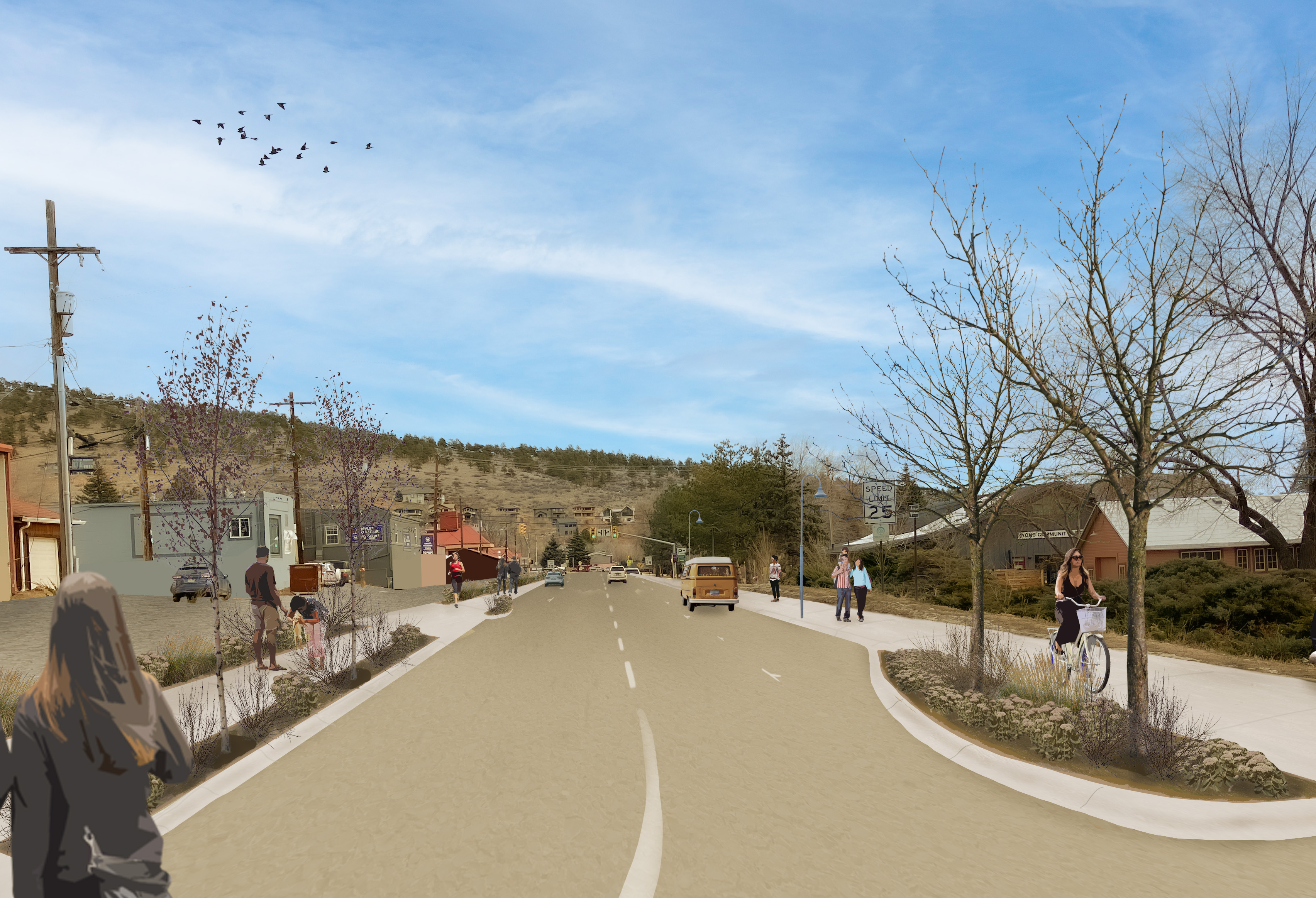 The project will build a multimodal pathway, along the southern edge of Broadway, connecting CO-7/5th Ave in Lyons on the western end of downtown Lyons to the St Vrain trail network and Black Bear Hole at the eastern edge of town. Access to businesses will also be improved by creating pedestrian walkways and additional parking opportunities.