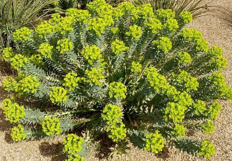 Myrtle spurge is a tap rooted perennial that can reproduce by seed or plant fragments. Myrtle spurge is an escaped ornamental, found in small patches. This plant contains a toxic, milky sap which can cause severe skin irritations, including blistering. Myrtle spurge is poisonous if ingested; causing nausea, vomiting and diarrhea.  Wearing gloves, long sleeves, shoes, and eye protection is highly recommended when in contact with all plant parts.